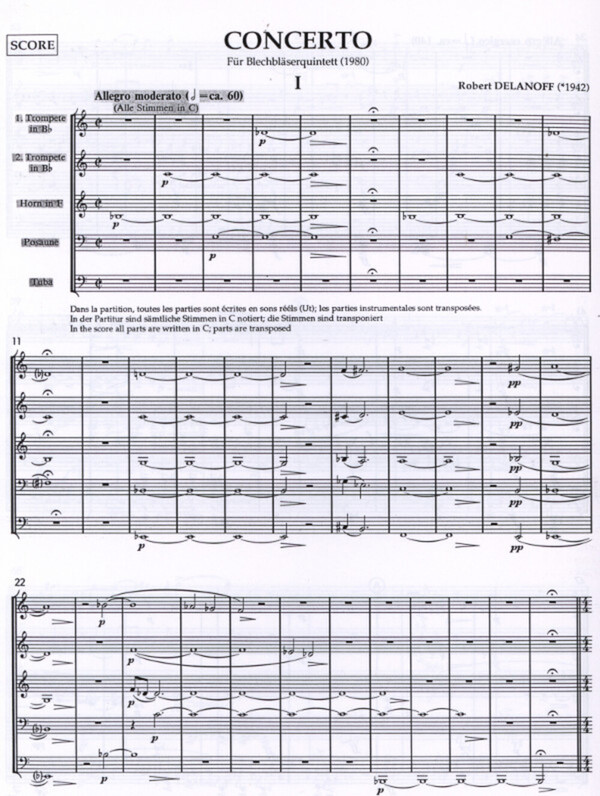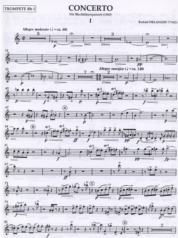 This Concerto for brass quintet was written in the classical Sonata form. Through the continual use of all five instruments, the piece takes on a symphonic character. The theme of the first movement consists of 4 tones, which are gradually developed in various ways, thereby creating particularly attractive tonal colors. The theme of the second movement, presented by the tuba, is based on a Db major chord. The triplet accompaniment of the horn and fluegelhorn supports the development of the theme, which the first trumpet introduces into a lyrical tutti second theme. Af¡ter the calm section that follows, the first theme is suddenly interrupted by ascending flurries of notes by the piccolo trumpet, climaxing the movement and then changing into a kind of transfiguration. The third movement could be called a kind of street music. Each instrument is featured as a soloist and has a chance to display his virtuosity. The movement begins and ends in a very optimistic way with fanfarelike passages in 10/8 and 12/8.