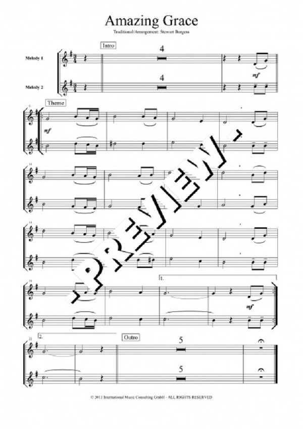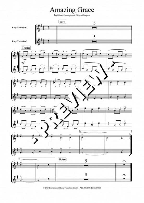 Pro Song gibt es jeweils die notierte Melodiestimme sowie eine leichte (easy) und schwere (advanced) Variation für Fortgeschrittene Spieler - alles 2-stimmig gesetzt.