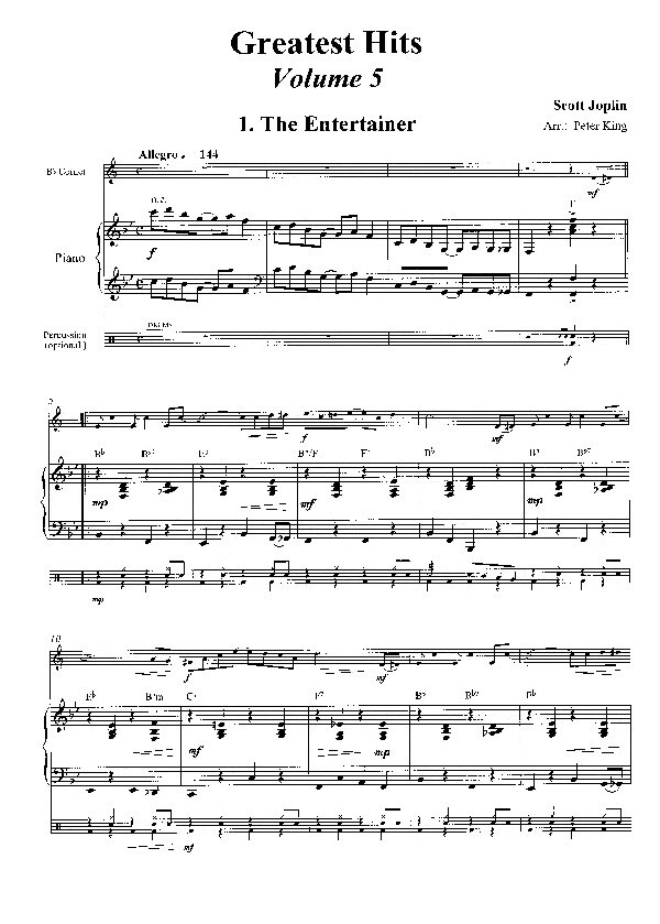 für B-Kornett + Klavier (+ Percussion ad lib.)