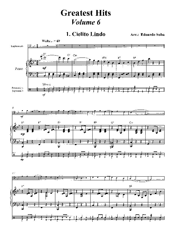 (Inhalt: Eduardo Suba: Cielito Lindo - W.C. Handy: St. Louis Blues - George Gershwin: Swanee - Johann Strauss: Tritsch Tratsch Polka - Jan Sedlak: Shalom) für Euphonium und Klavier (Percussion ad libitum)