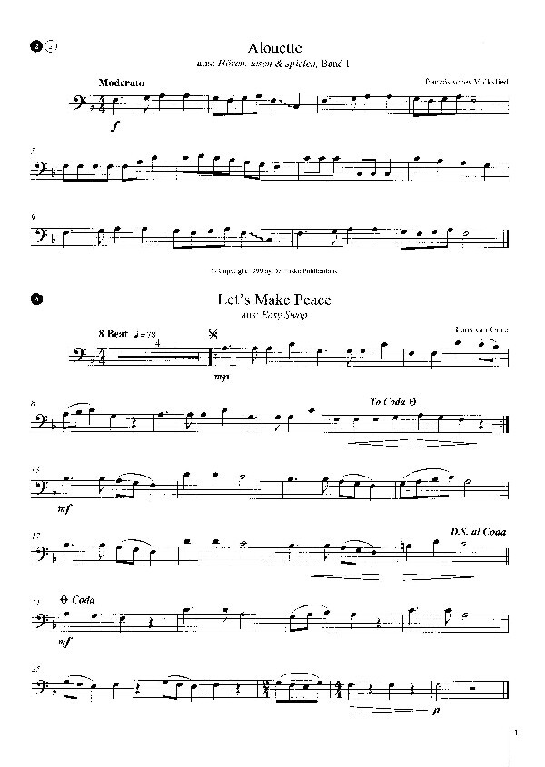 (Inhalt: Alouette - van Gorp: Let's Make Peace - Boyle: Double-deaded Dragon - Tanner/Weber: Etude Nr.25 - Springtanz - Vandercock: Ruby - van Gorp: Rag Is Back - + Mr. John - Hering: Nr. 11 - Tanner/Weber: Etude Nr.55 - Mozart: Allegro - Händel: Passacaille - Vandercook: Turquoise - Endresen: Nr.3+4): für Posaune/Bariton in C und Klavier