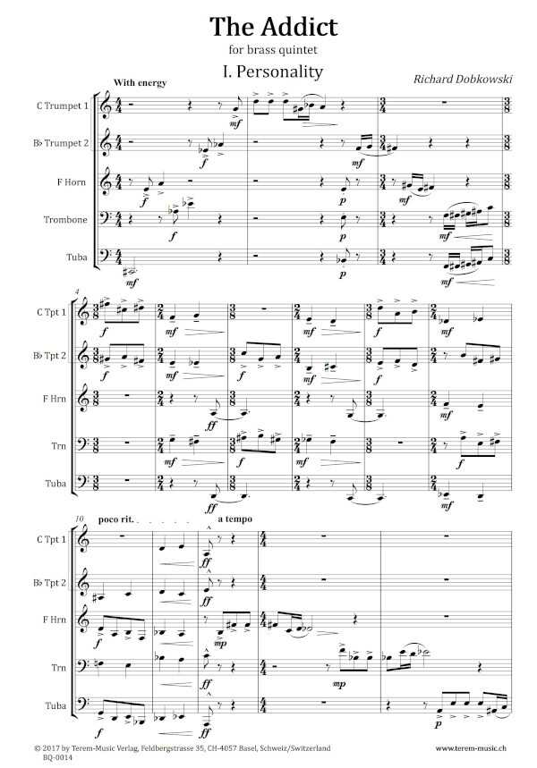 Partitur und Stimmen Trompete 1 in C Trompete 2 in B Horn in F Posaune Tuba Dauer: 9:40 1. Personality 2. Getting high 3. Withdrawal