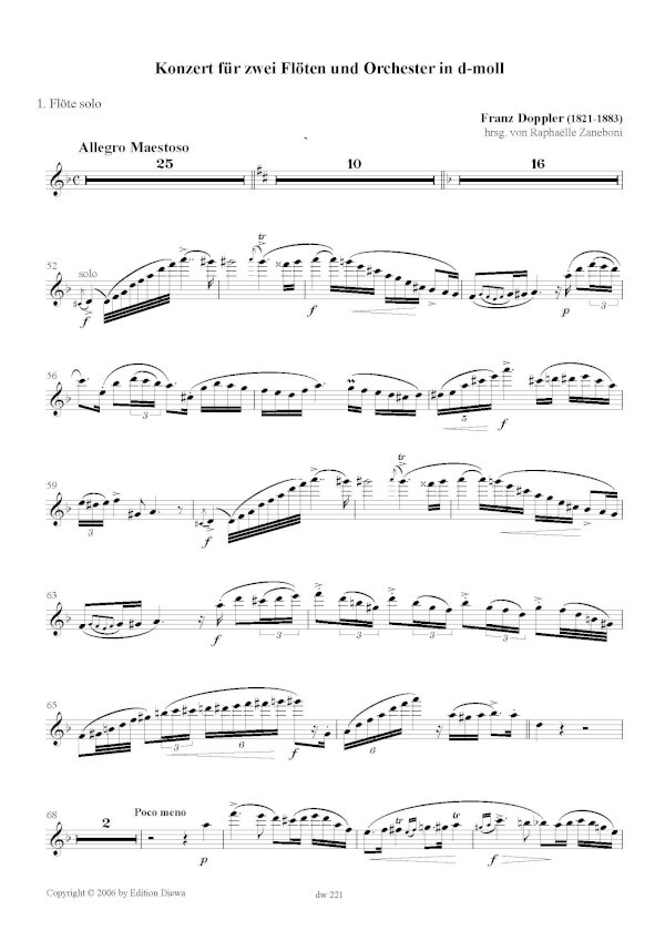 reduzierte Besetzung: 2 Solofl, 2 Fl, 2 Ob, 2 Klar, 2 Fg, 2 Trp, 3 Hr, Pk, Hrf ad.lib.) und Streicher