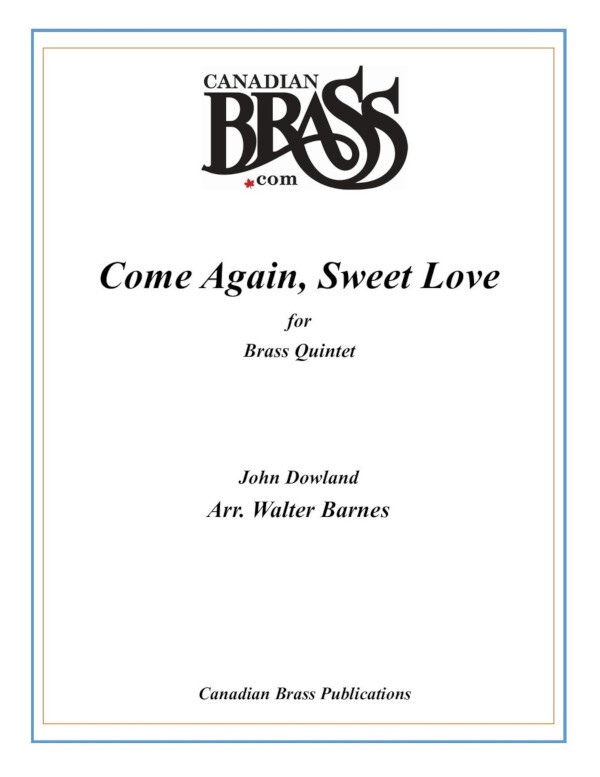 Walter Barnes arrangement of John Dowland's beautiful piece, Come Again, Sweet Love, as recorded on Takes Flight by Canadian Brass. This arrangement is for 2 Bb trumpets, horn, trombone and tuba and includes a score.