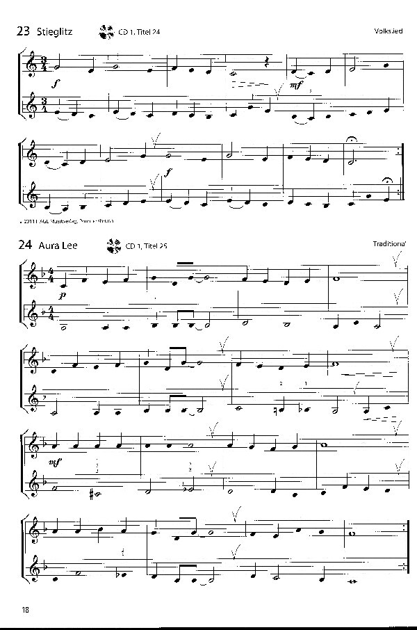 Die Stücke liegen in Duett- oder Trioform vor, so dass Schüler und Lehrer zusammen spielen können. Alle Stücke befinden sich auf den 2 CDs als Hörbeispiel. Damit eignet sich das Spielbuch auch hervorragend für das Selbststudium: Bei den meisten Liedern befinden sich die 1. + 2. Trompetenstimme getrennt auf dem rechten und linken Audiokanal. Zu einigen Stücken gibt es tolle Playbacks in 2 Versionen: Mit Trompete als Hörbeispiel und ohne zum selber Mitspielen, so kann sich der Schüler von einer tollen Band begleiten lassen und dabei mit viel Spaß die fantastische Welt der Blechbläser für sich entdecken.