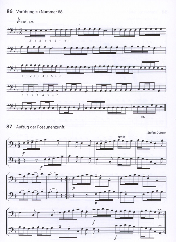 Internationale Spitzenlehrer empfehlen diese Schule. Warum? Weil das Konzept des Posaunen Fuchs wirklich funktioniert. Unzählige tolle Solostucke und Duette, musikalisch wertvolle Etuden, technische-, flexibilitäts- und ansatzaufbauende Übungen sowie ein lyrisch-sanglicher Zugang zur Kunst des Posaunenspiels tragen mit dazu bei, dass die Schuler nicht nur gut spielen, sondern auch gut klingen.