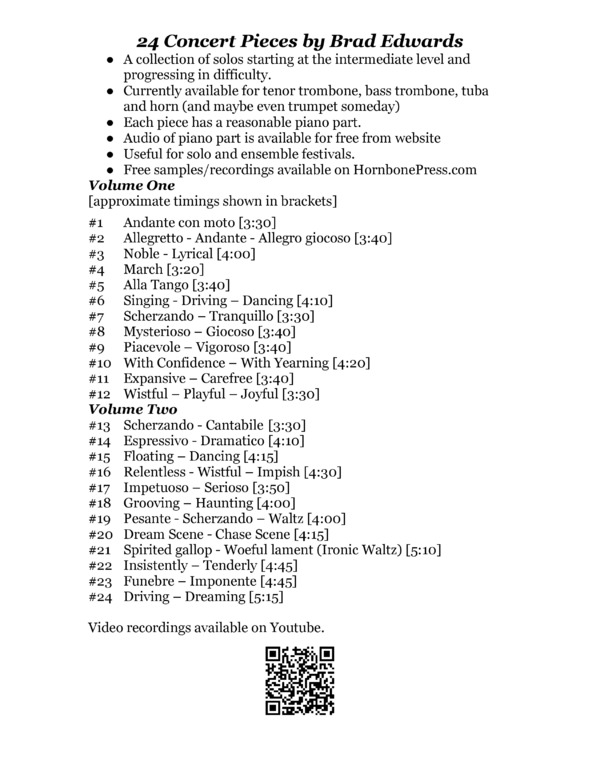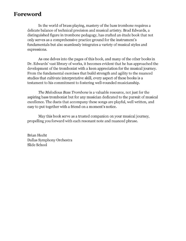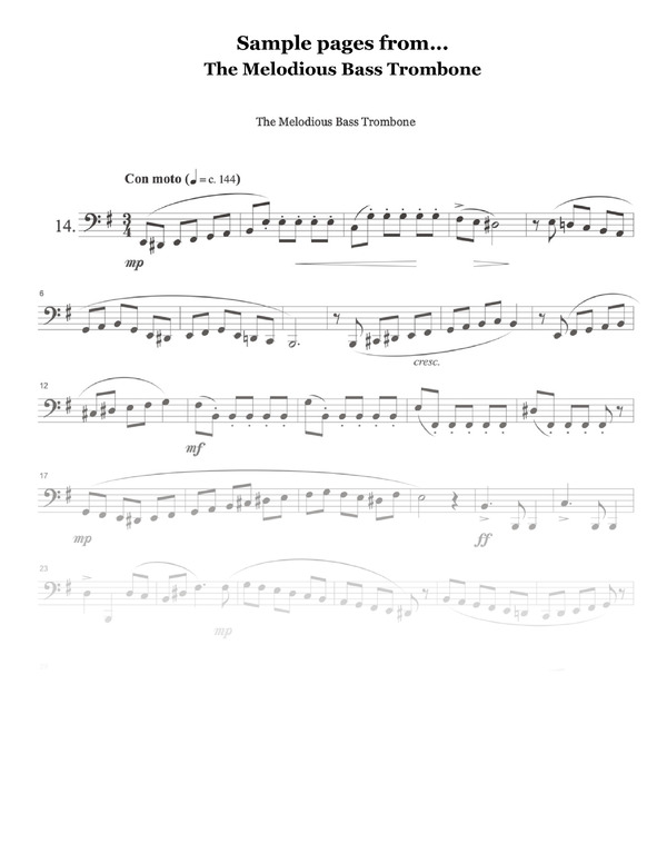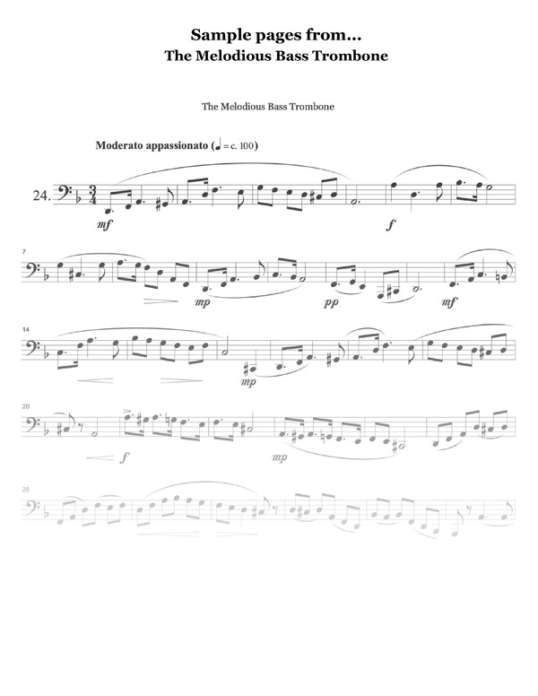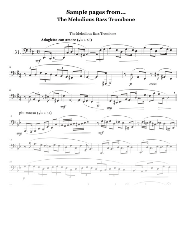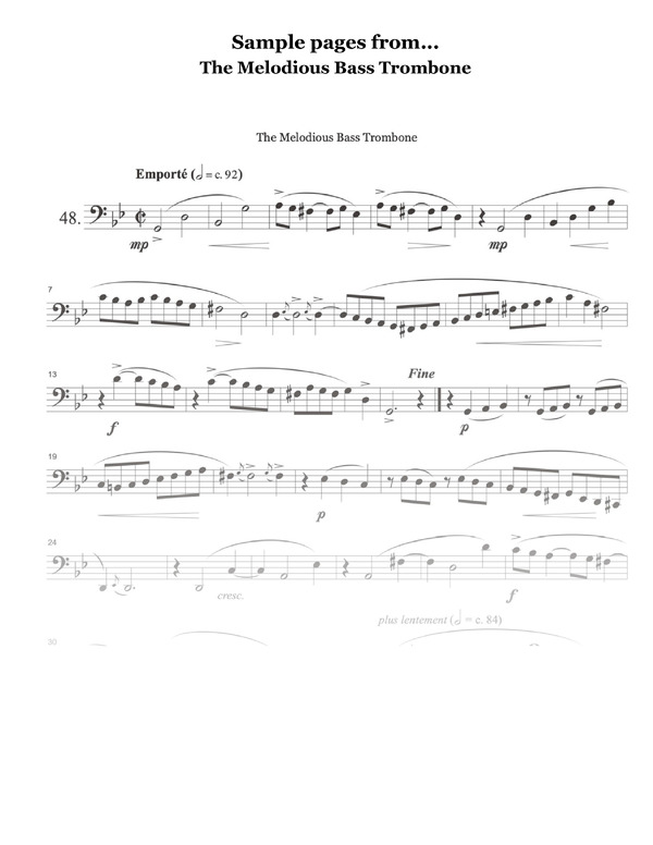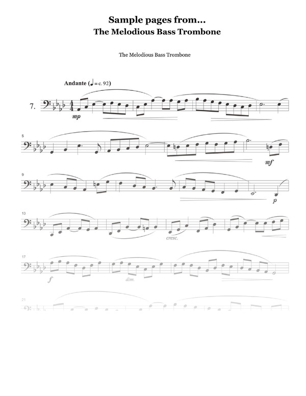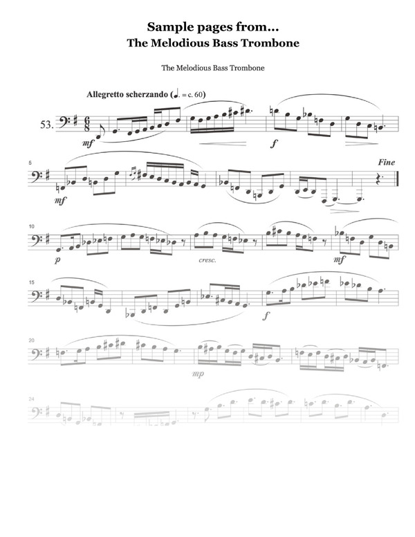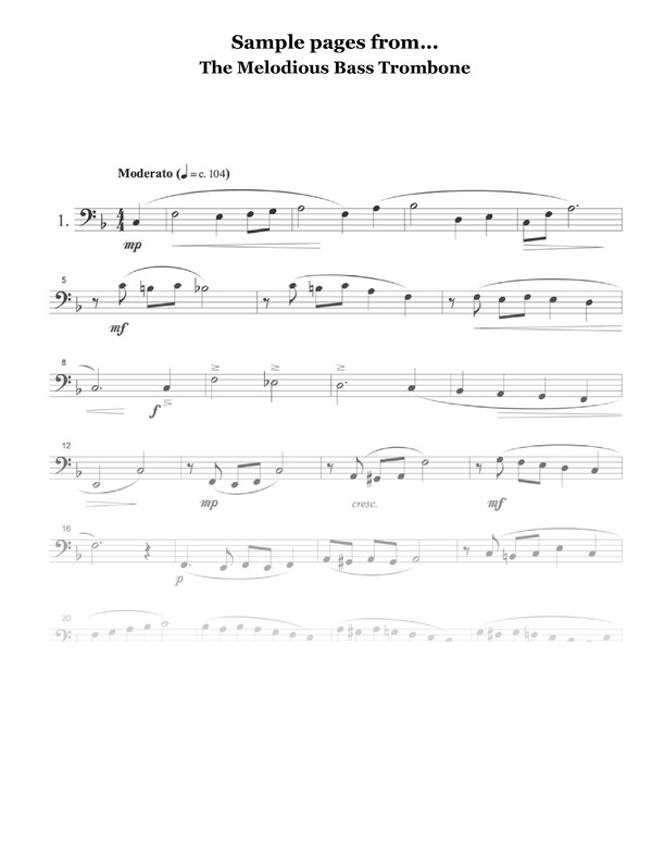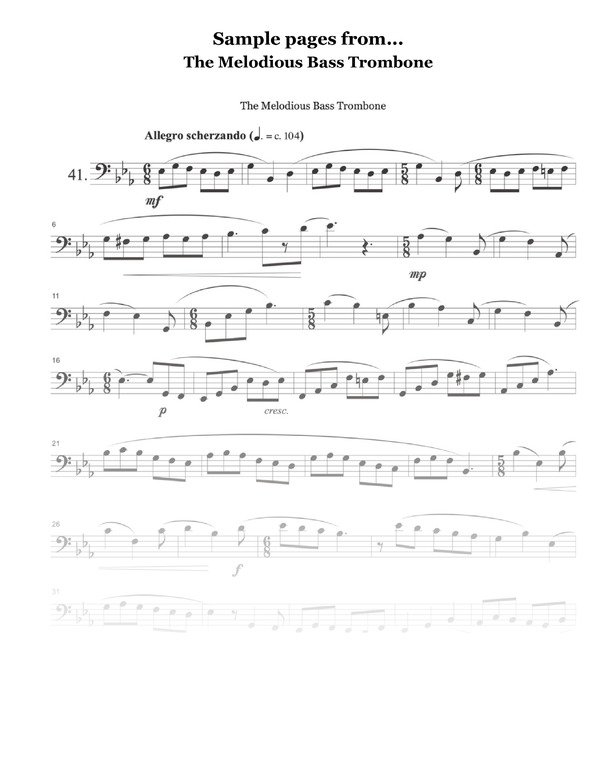 The Melodious Bass Trombone is a valuable resource, not just for the aspiring bass trombonist but for any musician dedicated to the pursuit of musical excellence. The duets that accompany these songs are playful, well written, and easy to put together with a friend on a moments notice.