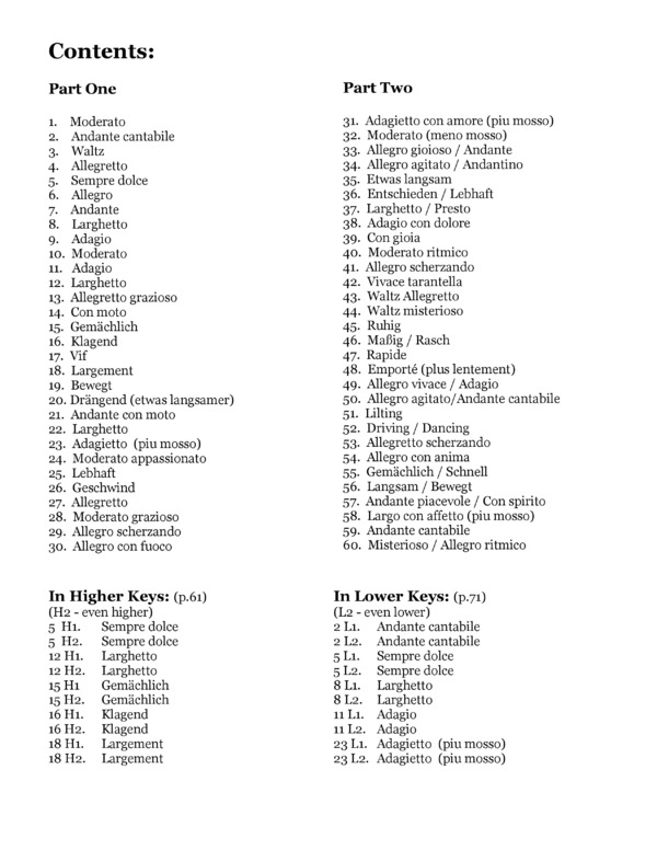 60 Original pieces (with duet parts) to provide some lyrical variety to your diet.