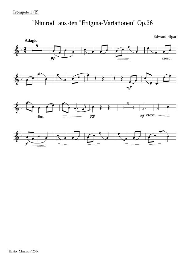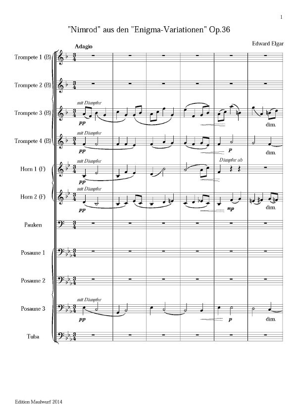 für 4 Trompeten, 2 Hörner, 3 Posaunen, Tuba + Pauken