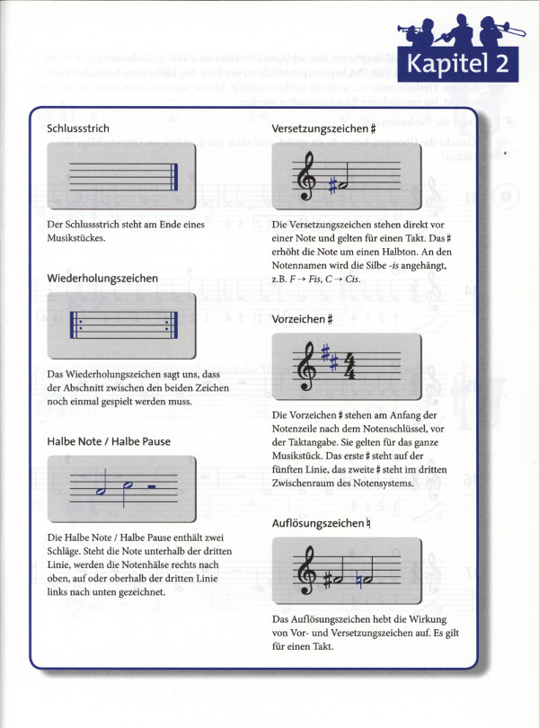 Diese Schule aus der Junior Band Reihe von Norbert Engelmann kann sowohl im Einzel- als auch im Gruppenunterricht verwendet werden: Die Schule ist in einzelne kapitel unterteilt, die den Stoff des leistungsabzeichens D1 verarbeiten. In den zahlreichen Übungen, Spielstücken, Etüden, Duetten und Trios wird der theoretische Lehrstoff praktisch verarbeitet.