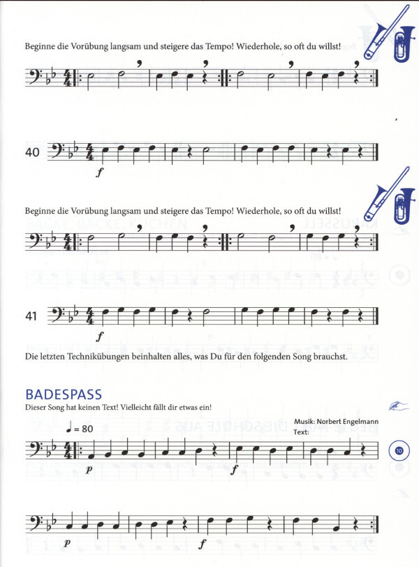 Diese Schule aus der Junior Band Reihe von Norbert Engelmann kann sowohl im Einzel- als auch im Gruppenunterricht verwendet werden: Die Schule ist in einzelne kapitel unterteilt, die den Stoff des leistungsabzeichens D1 verarbeiten. In den zahlreichen Übungen, Spielstücken, Etüden, Duetten und Trios wird der theoretische Lehrstoff praktisch verarbeitet.