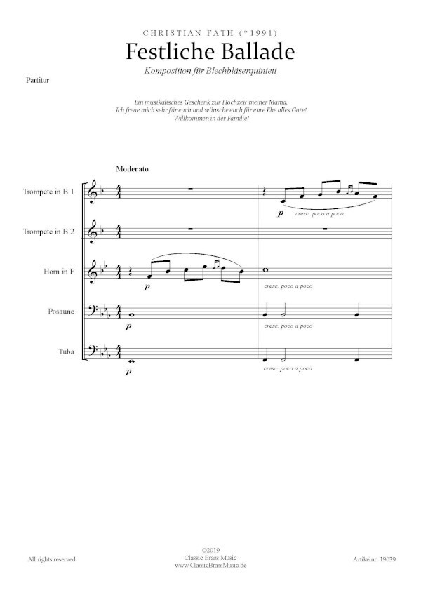Dieses kurze popmusikalisch angelehnte Stück wurde als Überraschungswerk konzipiert. Die Hochzeit der Mutter des Komponisten bot den Rahmen für die Uraufführung und verband in diesem Sinne ein liebevoll gestaltetes Geschenk mit einem hörenswerten Musikgenuss für Publikum und Musiker.