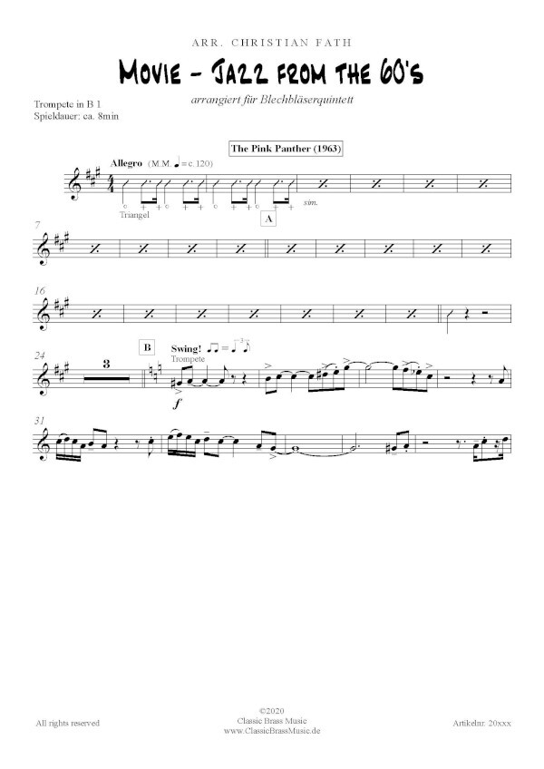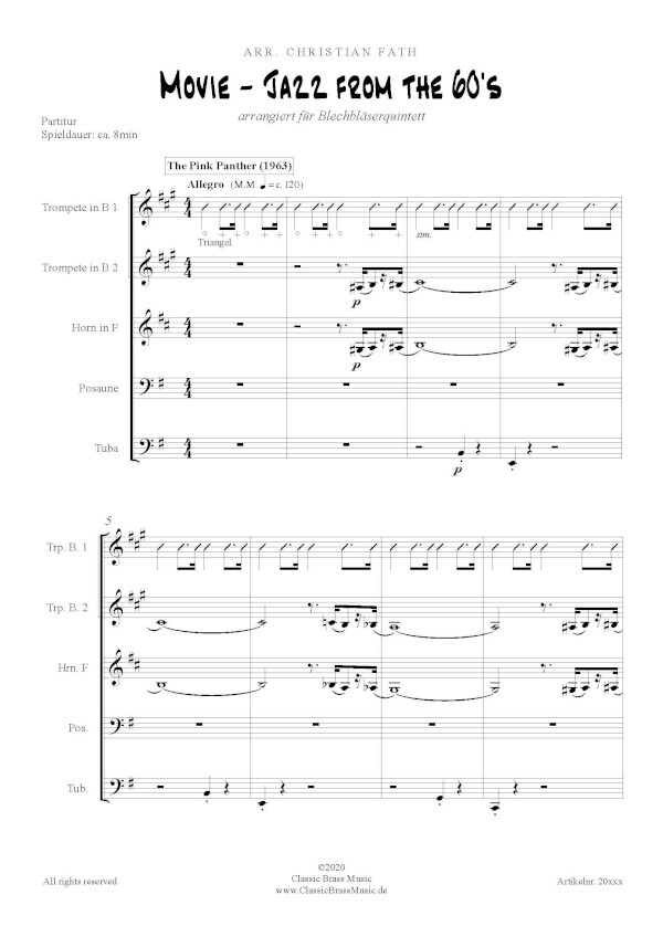 2 Trompeten in B, Horn in F, Posuane und Tuba