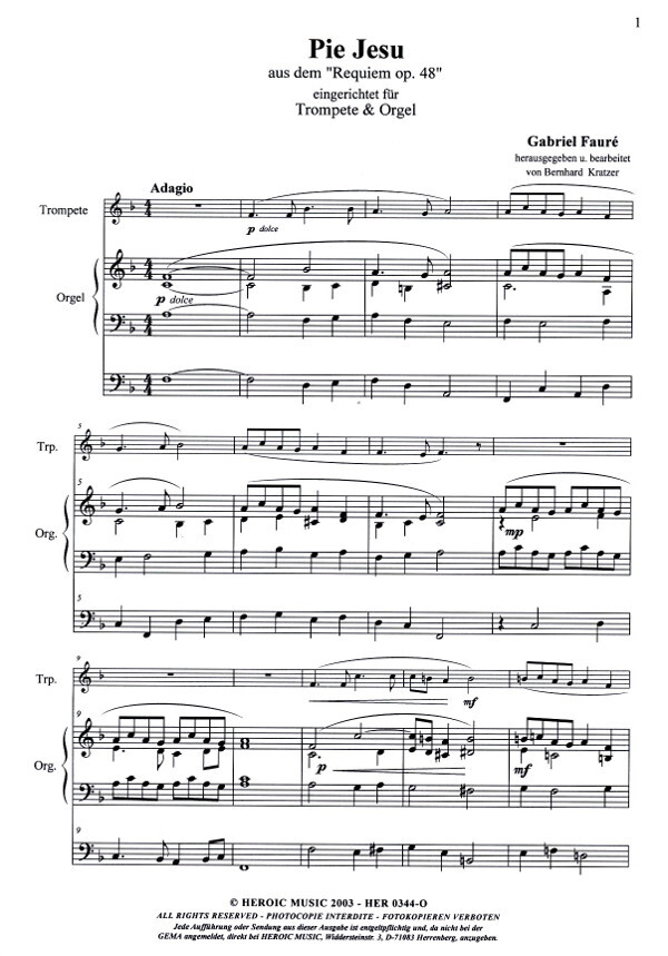 Pie Jesu (aus dem "Requiem" op. 48) - F-Dur, Schülerfassung