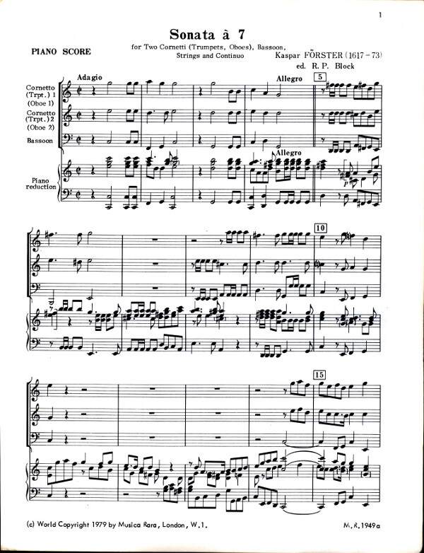 für 2 Trompeten (Oboen, Zinken), Fagott + Streicher