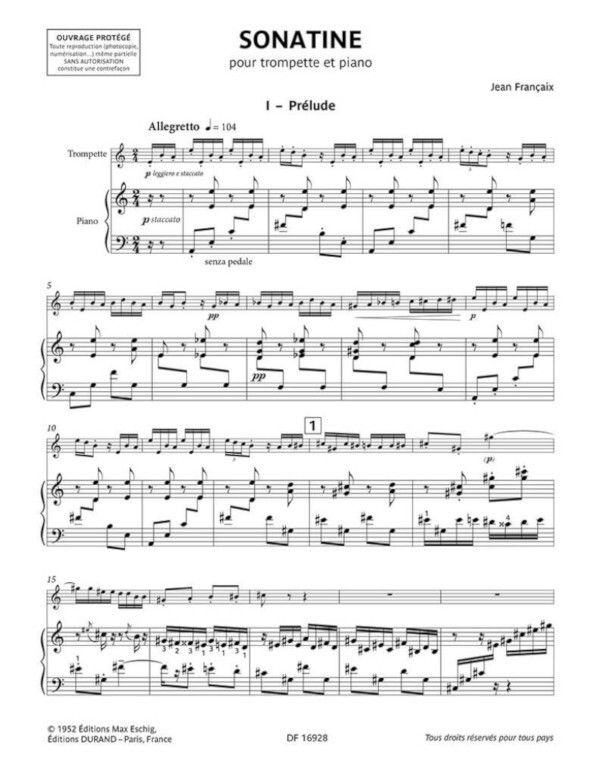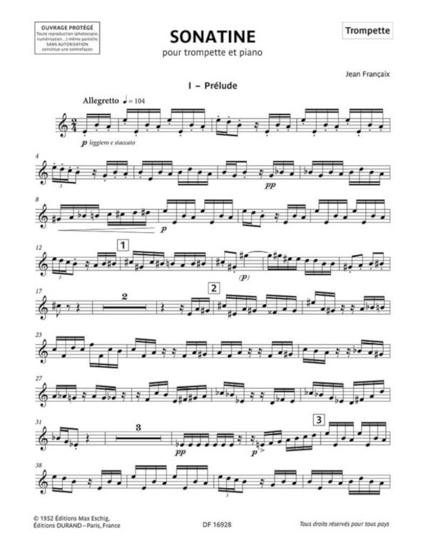 Die Sonatine (1950) besteht aus einer "Prélude", einer "Sarabande" und einer "Gigue" und nimmt Bezug auf antike Tanzsuiten. Die Virtuosität des Komponisten erlaubt es ihm jedoch, sich auf elegante Weise von diesem scheinbar starren Rahmen zu befreien. Obwohl die Sonatine als Ganzes von Humor geprägt ist, stellt Françaix in jedem Satz seine Kunst in den Dienst eines stilistischen Charakters.