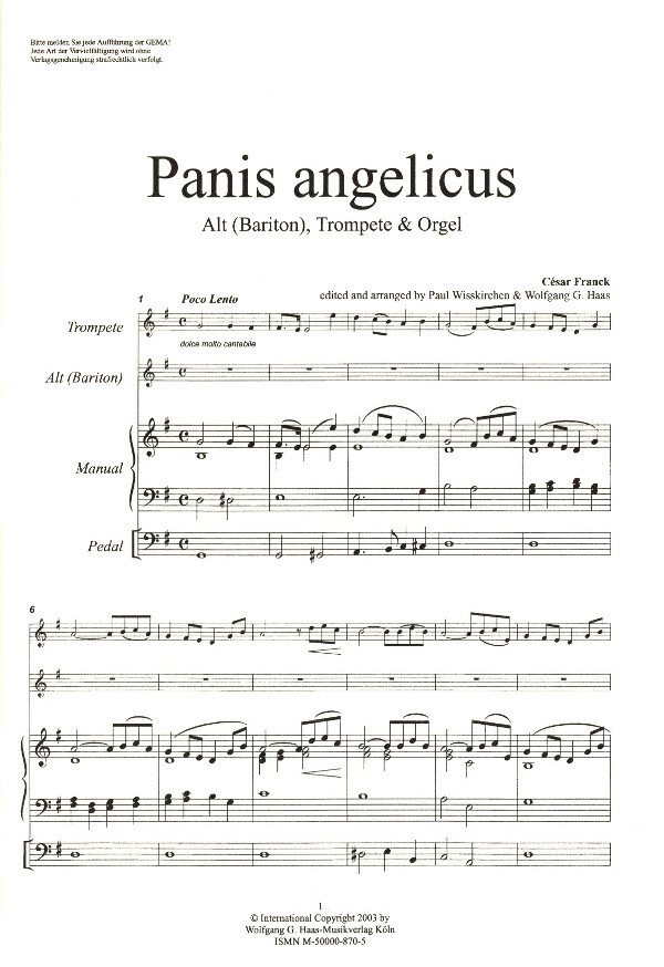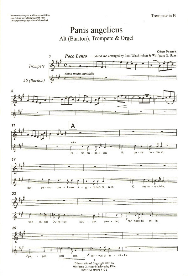 Panis angelicus (aus der Messe op. 12) - G-Dur (transponierte Ausgabe)