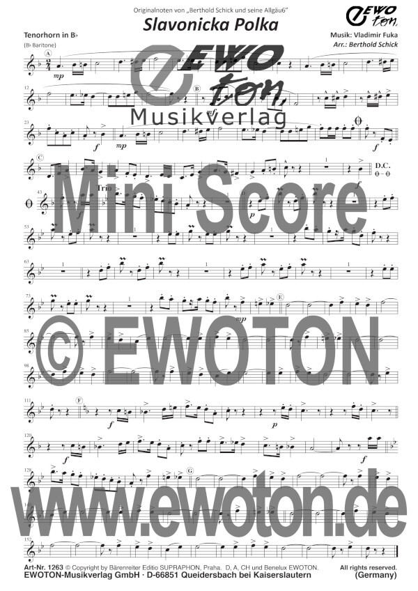 Die Besetzung besteht aus einem klassischen 6er Blech Register (1.+2. Flügelhorn Bb, Trompete Bb, Tenorhorn Bb, Bariton C/Bb und Bass C/Bb) und Schlagzeug und kann bei Bedarf um eine 1. und 2. Klarinette (ad lib.) erweitert werden - dafür steht unser PLUS! Somit sind Besetzungen mit bis zu 10 Musikern möglich. Zusätzlich enthält das Set auch eine 6-zeilige Partitur.