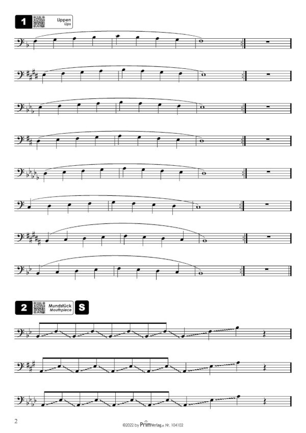 Enthalten sind Übungen für Lippen-Buszzing, Mundstück-Buzzing und am Instrument.