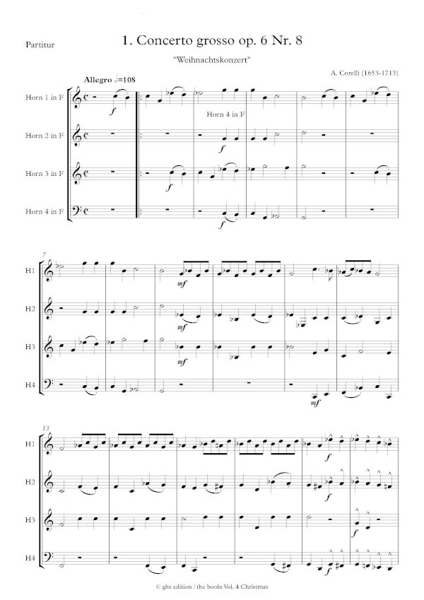 1. A. Corelli (1653-1713): Concerto grosso op. 6 Nr. 8 (Arr. Christoph Eß)