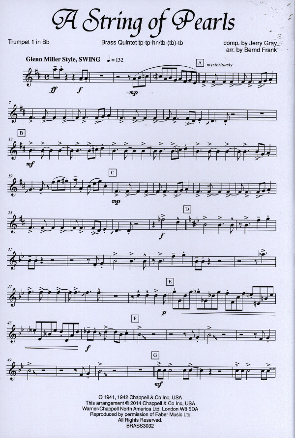 Inhalt: Partitur Stimme für Trompete 1 in B Stimme für Trompete 2 in B Stimme für Posaune 1 (Stimme für Posaune 2) Stimme für Posaune 3