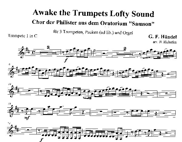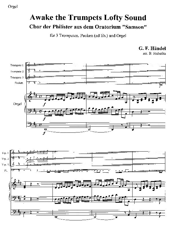 (Chor der Philister aus dem Oratorium "Samson", 1685-1795, Dauer 2:30 Min.) für 3 Trompeten in C, Pauken und Orgel