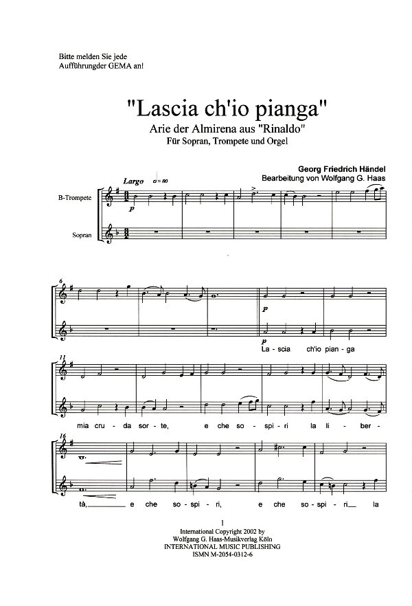 für Sopran, Trompete in B/C + B.c. (Orgel/Cembalo)
