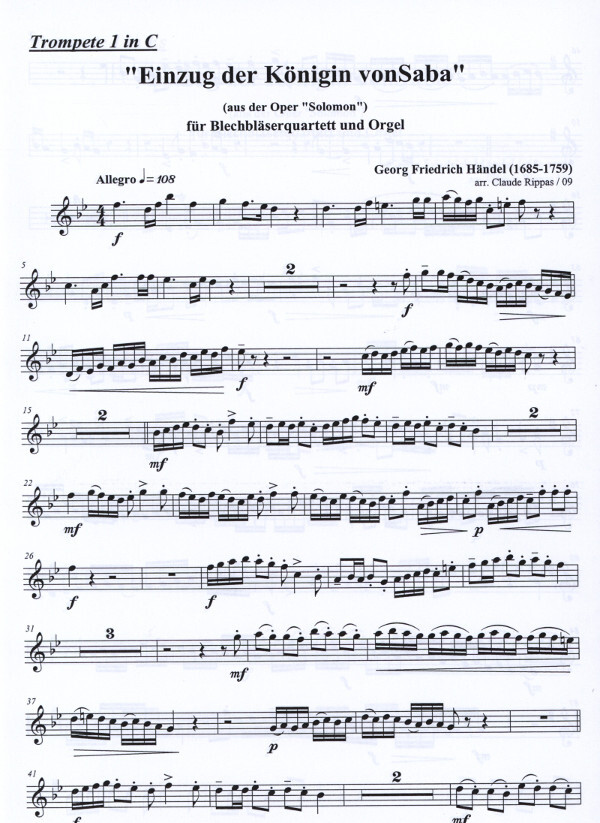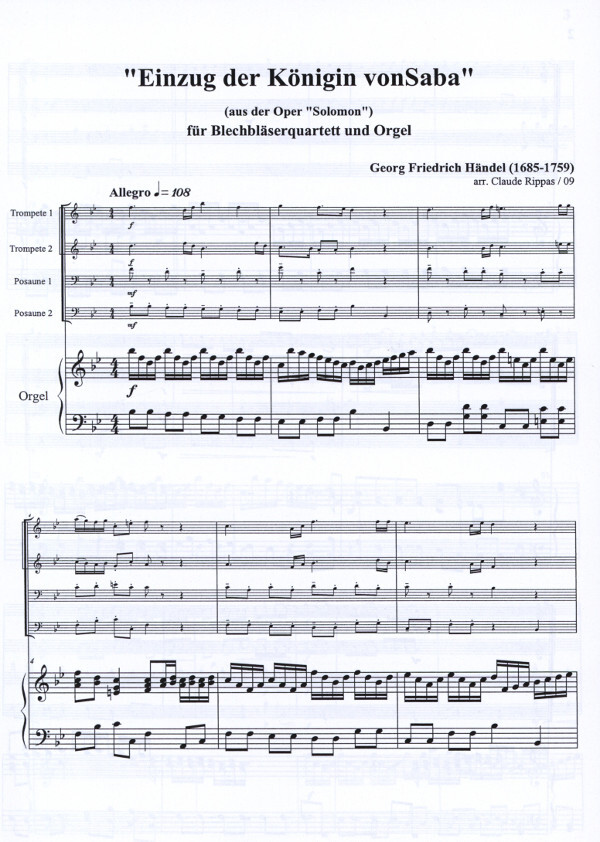 für 2 Trompeten in B, 2 Posaunen + Orgel