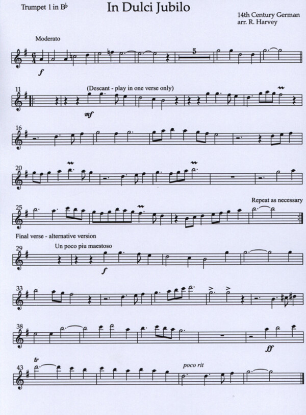 Dieses Stück kann sowohl rein instrumental als auch mit Gesang (entweder Chor unisono oder Gemeindegesang) aufgeführt werden.