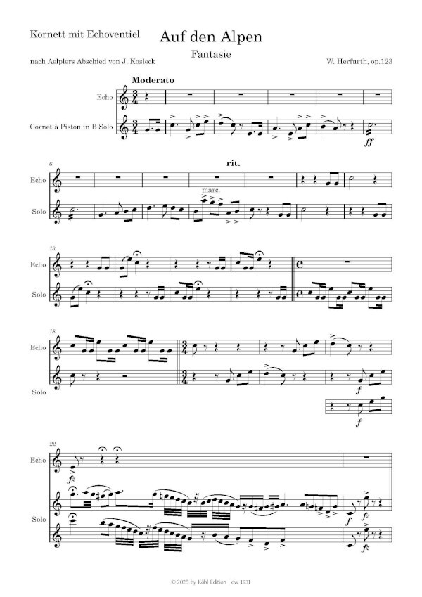 Die Solostimme war ursprünglich für Kornett mit Echoventil vorgesehen eine klangliche Idee, die dem Werk seinen besonderen Reiz verleiht. Wird das Stück auf