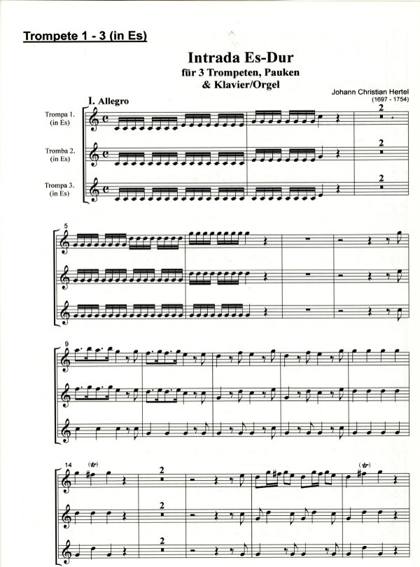 für 3 Trompeten in Es, Pauken und Klavier (Orgel)