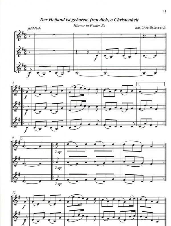 Die meisten dieser zwei Dutzend dreistimiger Weihnachtslieder sind vom alpenländischen Dreigesang geprägt, der in seiner Schlichtheit schönste Weihnachtsstimmung verbreitet. Auch weniger fortgeschrittenen Hornisten finden in diesem Heft Lieder, die für sie gut zu bewältigen sind.