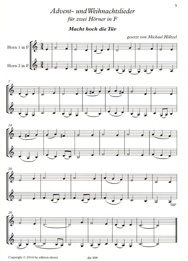 Obwohl diese Liedsätze für 2 Hörner gedacht sind, lassen sie sich auch von 2 Trompeten, 2 B- Klarinetten oder 2 Alt-Saxophonen spielen.