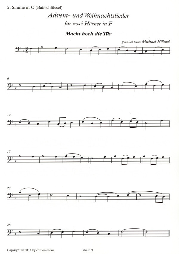 es liegt eine 2. Stimme in C im Baßschlüssel bei (Posaune, Violoncello, Fagott, etc.)