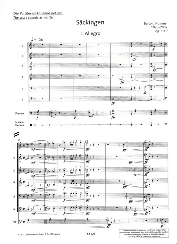 Musik für 6 Trompeten (oder alternative Blechblasinstrumente) und Pauken (auch Nietenbecken):