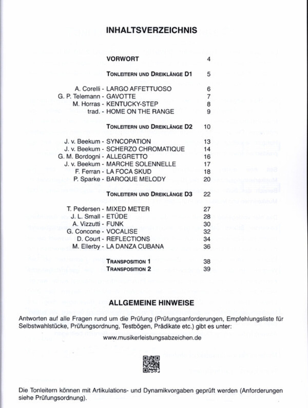 für die Instrumentalprüfungen des bayerischen Blasmusikverbandes D1, D2 und D3