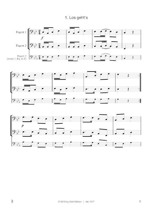 für 2 Fagotte oder 2 Fagottini in F (dabei ist diue 2. Stimme auch mit Fagott möglich)