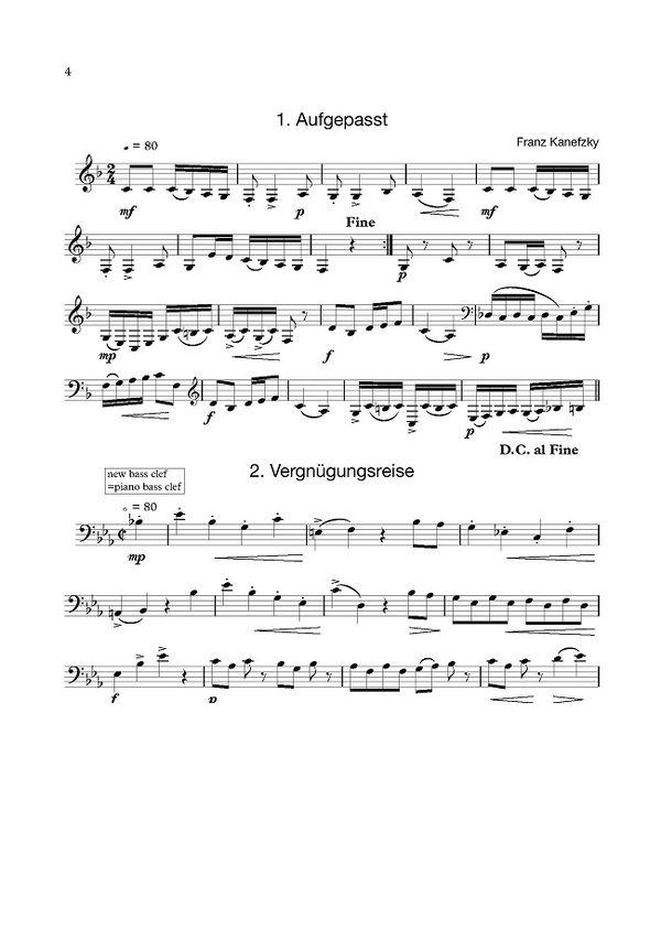 interessante Stücke für tiefes Horn zum Erlernen der verschjiedenen Baßschlüssel und der tiefen Lage.