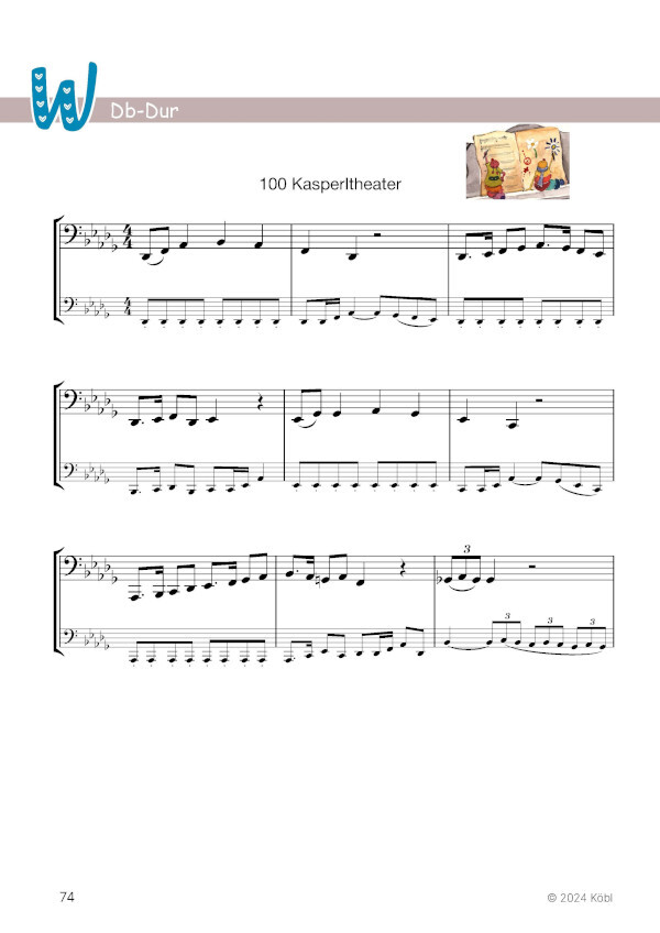 Auch kann mit den ersten Tönen schon ein gemeinsames Musizieren bekannter Melodien zusammen mit dem Lehrer stattfinden.