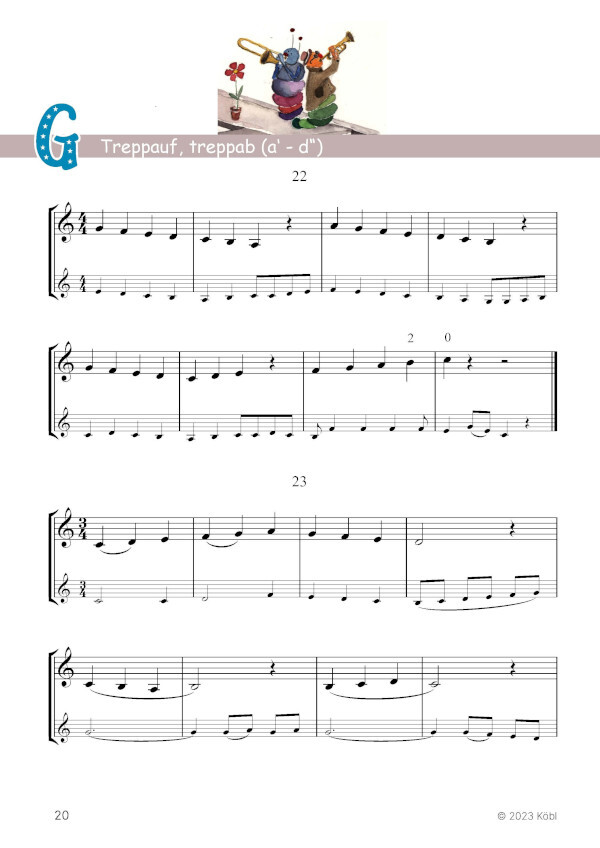 die schon bald in das Lernen mit einbezogen werden können. Durch die Möglichkeit jedes Musikstück sowohl alleine - als auch im Unterricht zu zweit - spielen zu können, wächst die Motivation am täglichen Üben.
