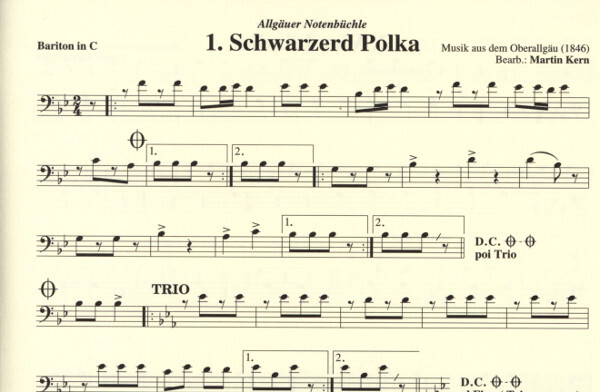 "Liebe Blasmusikfreunde ! Nach der Veröffentlichung der Allgäuer Bauernmusik und der Ober- und Westallgäuer Tanzbodenmusik freue ich mich ganz besonders über das Allgäuer Notenbüchle. Die 4-stimmigen Blechbläserstücke sind im Aufbau und im Stil ein Querschnitt meines musikalischen Schaffens der letzten Jahre. An erster Stelle stehen dabei die Bearbeitungen originaler Bläsermelodien aus Allgäuer Musikantenhandschriften des 19. Jahrhunderts. Diese sind vor allem durch die Trio-Form (oftmals mit einem 2. Teil im Trio) und die Melodie-Reihungen sehr interessant.Meine Eigenkompositionen orientieren sich im Aufbau an der gängigen Musizierpraxis der Volksmusik im Alpenraum. Besonders charakteristische Stilelemente sind dabei für mich der Wechsel zwischen DUR und MOLL und die Bordunmusik des Mittelalters mit der dafür typischen Dudelsackquinte.