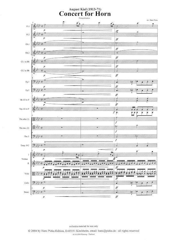 2 Flöten, 2 Oboen, 2 Klarinetten in B, 22 Fagotte, /2 Hörner, 2 Trompeten, 2 Posaunen, Bassposaune, Pauke