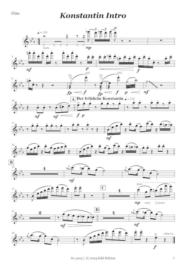 Der Text kann entweder aus der Partitur gelesen werden oder aus der beigefügten Sprecherstimme. Gelesen werden nur die nicht fetten, kursiven oder unterstrichenen Passagen.