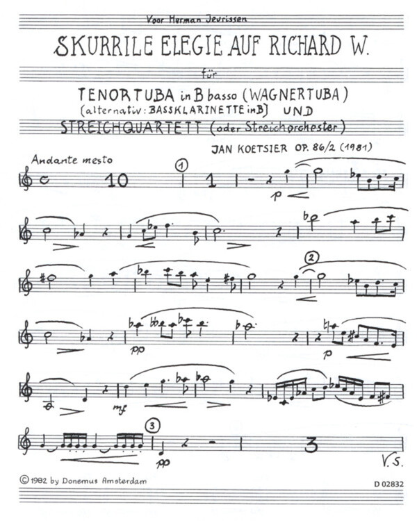für Wagnertuba (Baßklarinette) + Streichquartett