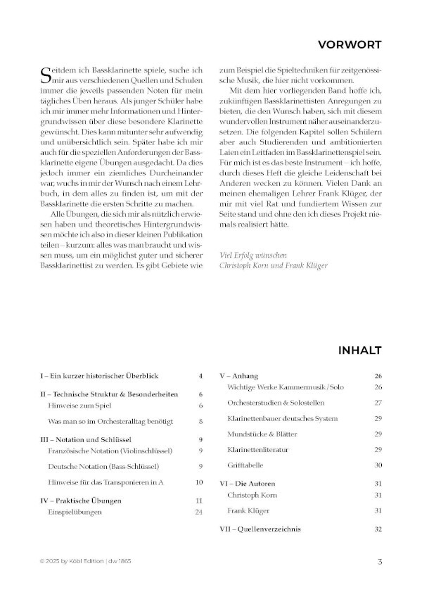 Die folgenden Kapitel sollen Schülern aber auch Studierenden und ambitionierten Laien ein Leitfaden im Bassklarinettenspiel sein. Für mich ist es das beste Instrument - ich hoffe, durch dieses Heft die gleiche Leidenschaft bei Anderen wecken zu können.