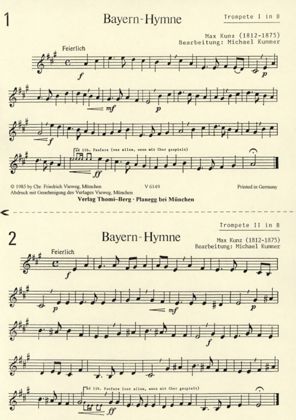 für 2 Trompeten, Horn in F/Es (Posaune), Posaune + Tuba ad lib.