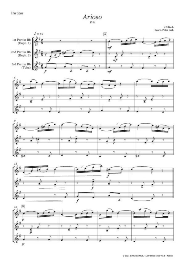 1st Part (Euph. 1): Euphonium, Baritone, Trombone (C, Bb) 2nd Part (Euph. 2): Euphonium, Baritone, Trombone (C, Bb) 3rd Part (Tuba): Tuba, Euphonium, Trombone, Baritone (C, Bb, Eb)