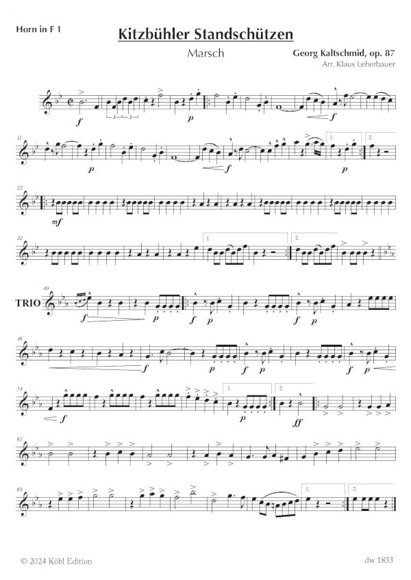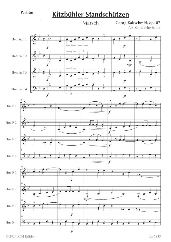 endlich eine Sammlung von Märschen für Hornquartett in einer tollen Bearbeitung von Klaus Leherbauer.