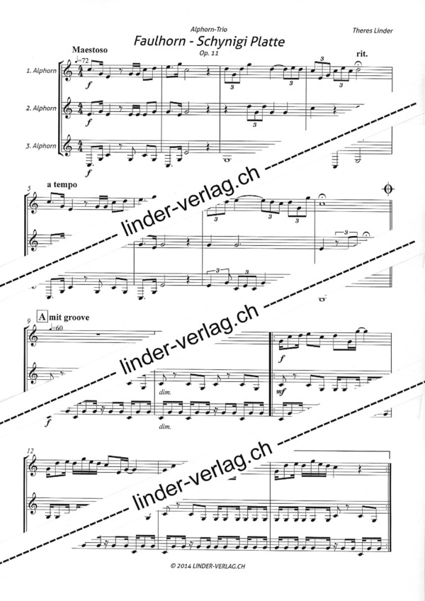 Tonumfänge: 1. Alphorn: g1 - c3; 2. Alphorn: e1 - e2; 3. Alphorn: c - g1