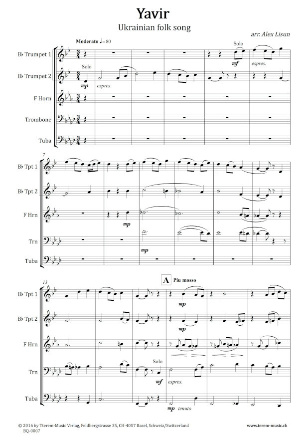 Partitur und Stimmen Trompete 1 in B Trompete 2 in B Horn in F und Es Posaune in C und B Tuba in C, Es und B